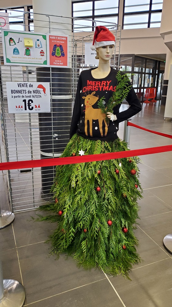 Les fêtes de fin d'année approchent. N'oubliez pas la journée du pire pull de Noël mardi 17 décembre. Pour cette occasion, les élèves de 4e segpa ont confectionné une jupe en thuya et les élèves du CVC ont décoré le mannequin.