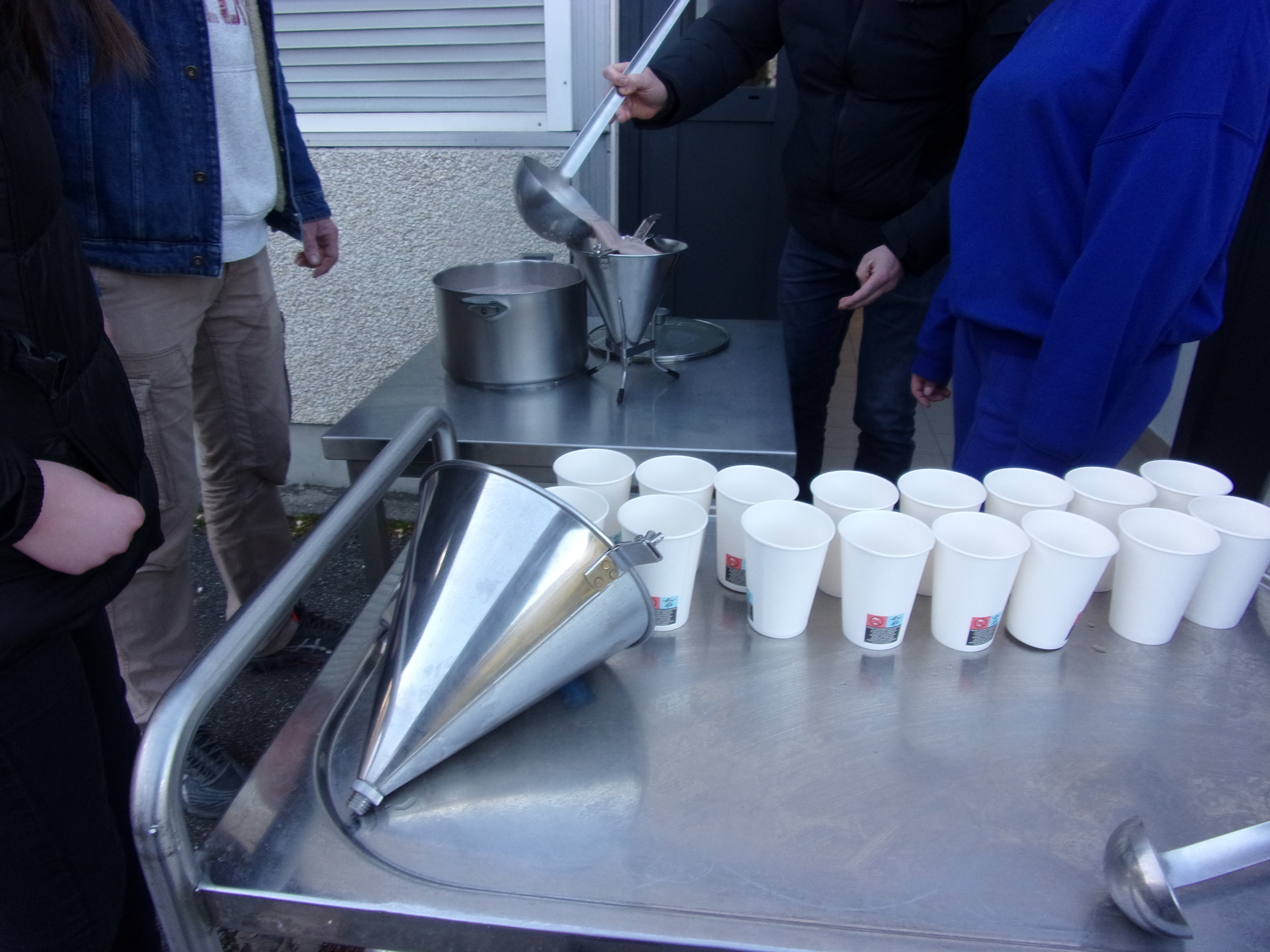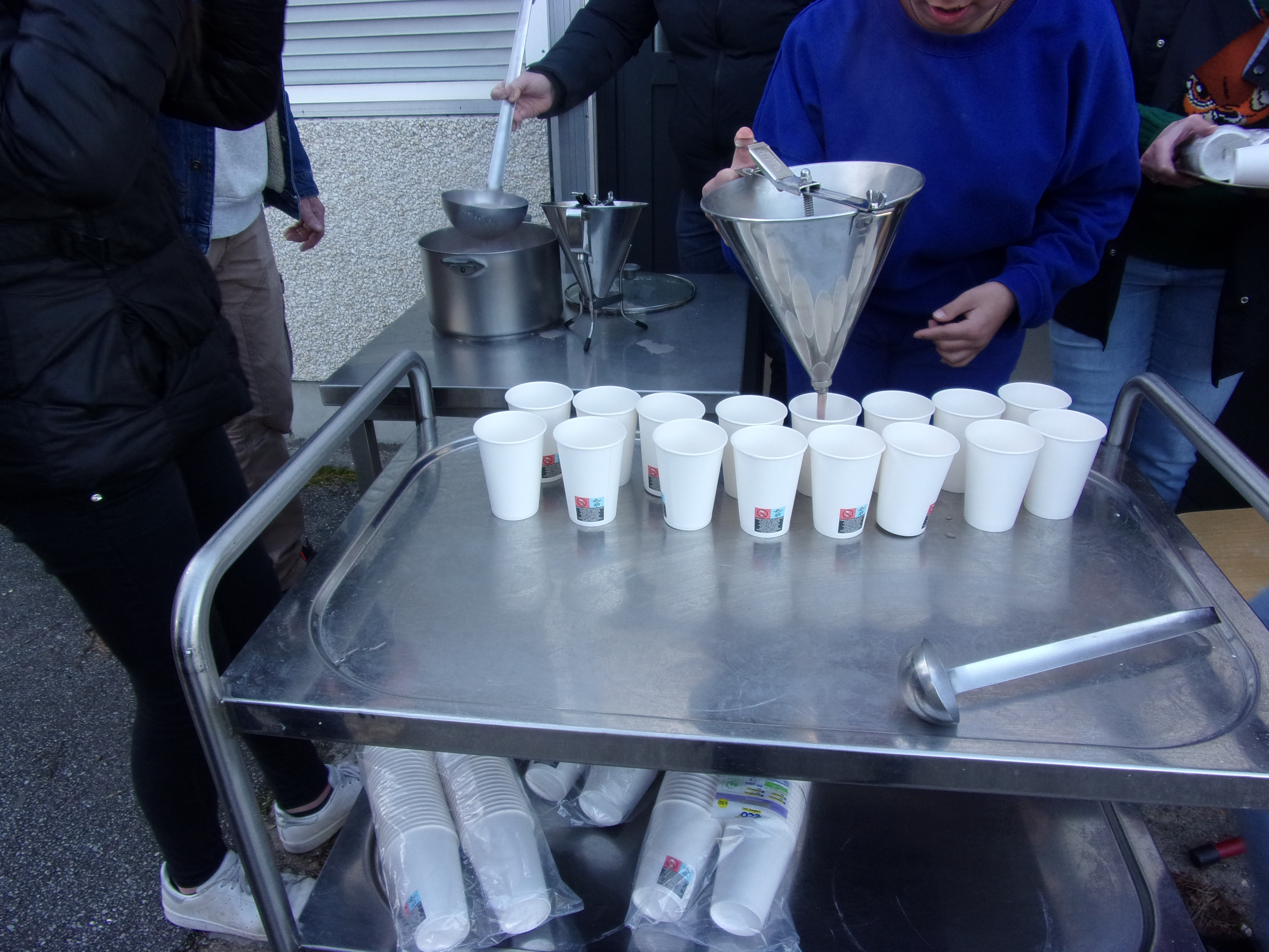 Les élèves de l'atelier HAS de madame Parant ont proposé à la récréation de l'après-midi, un verre de chocolat chaud fait-maison à leurs camarades.