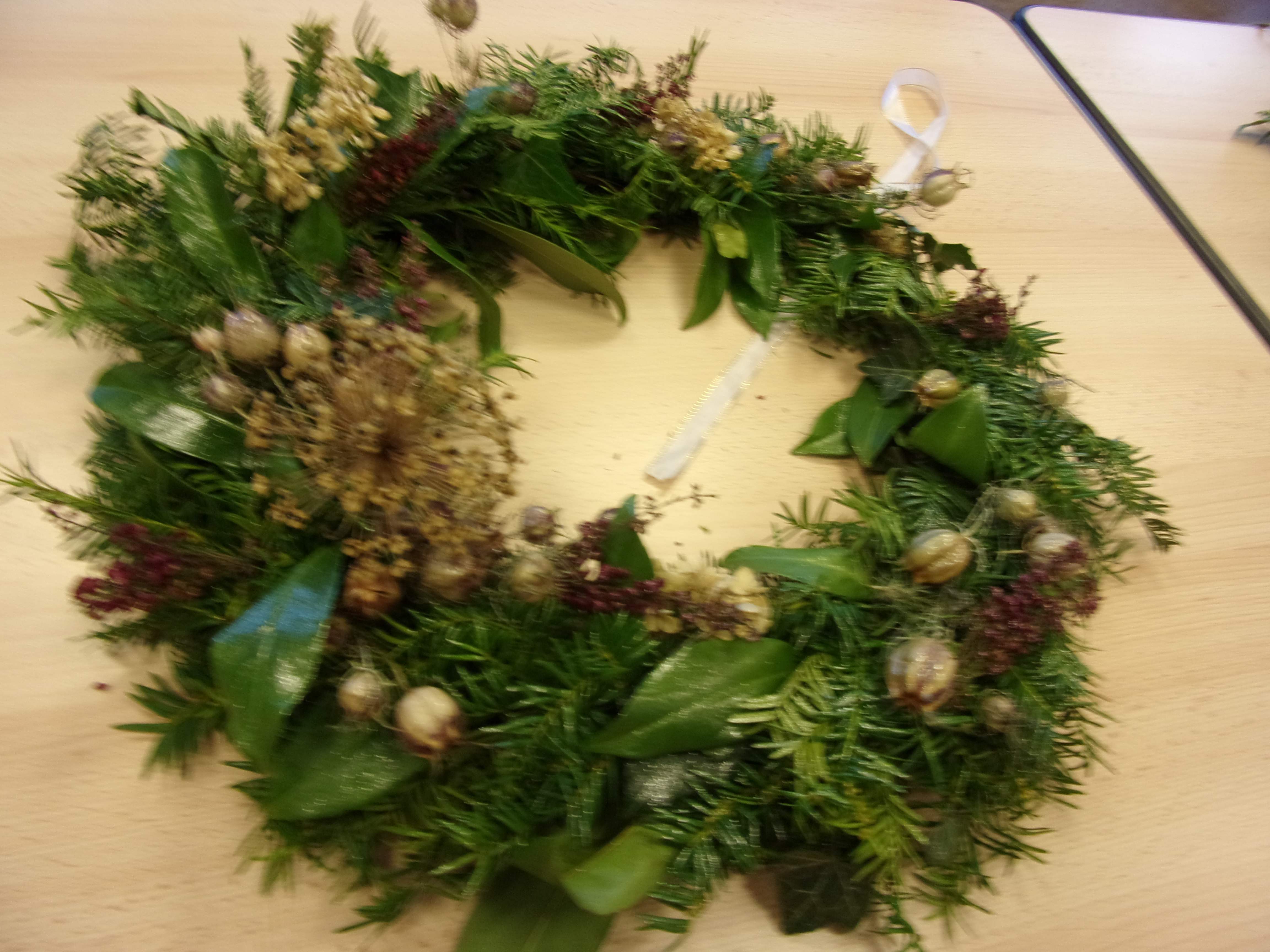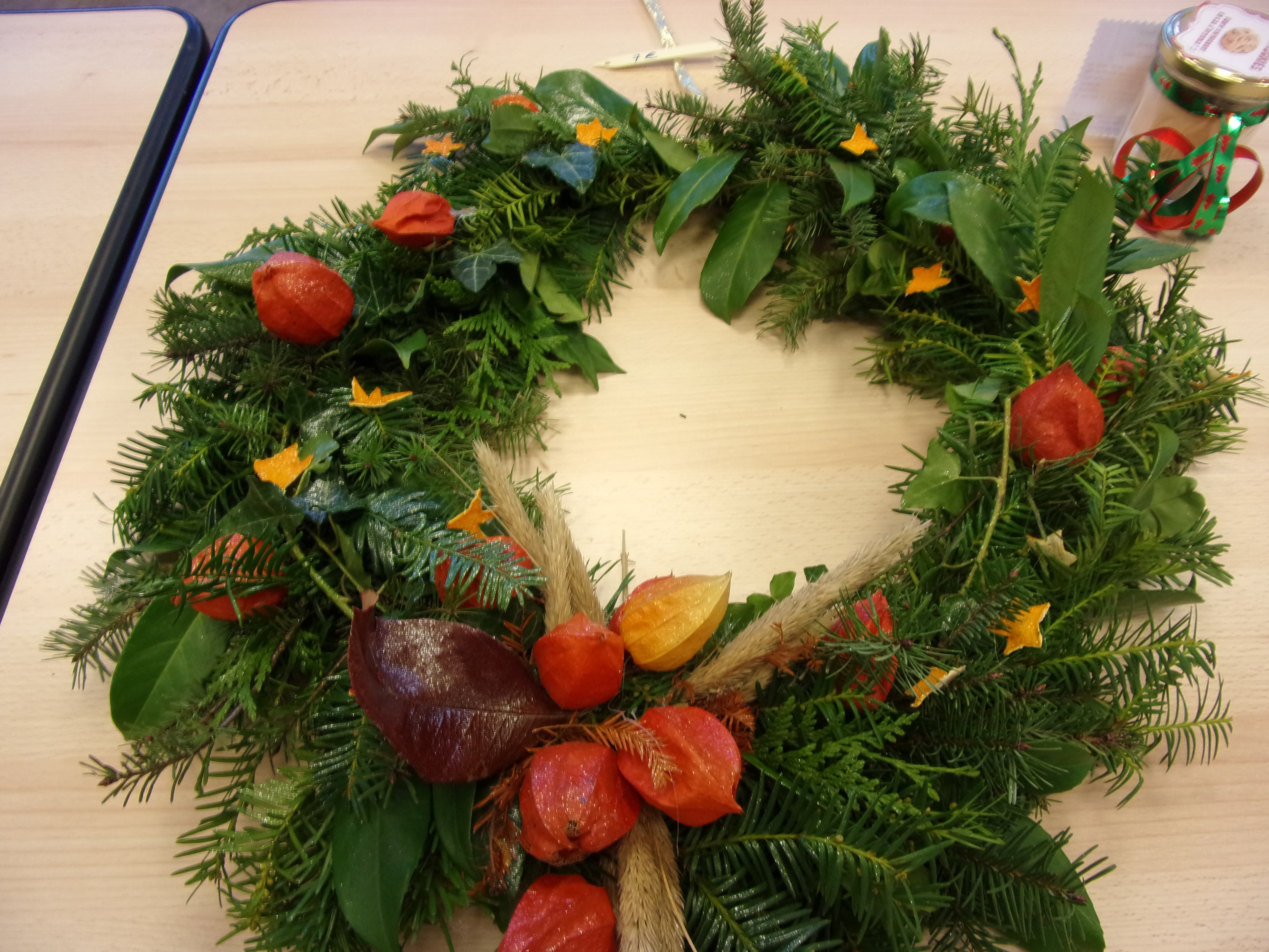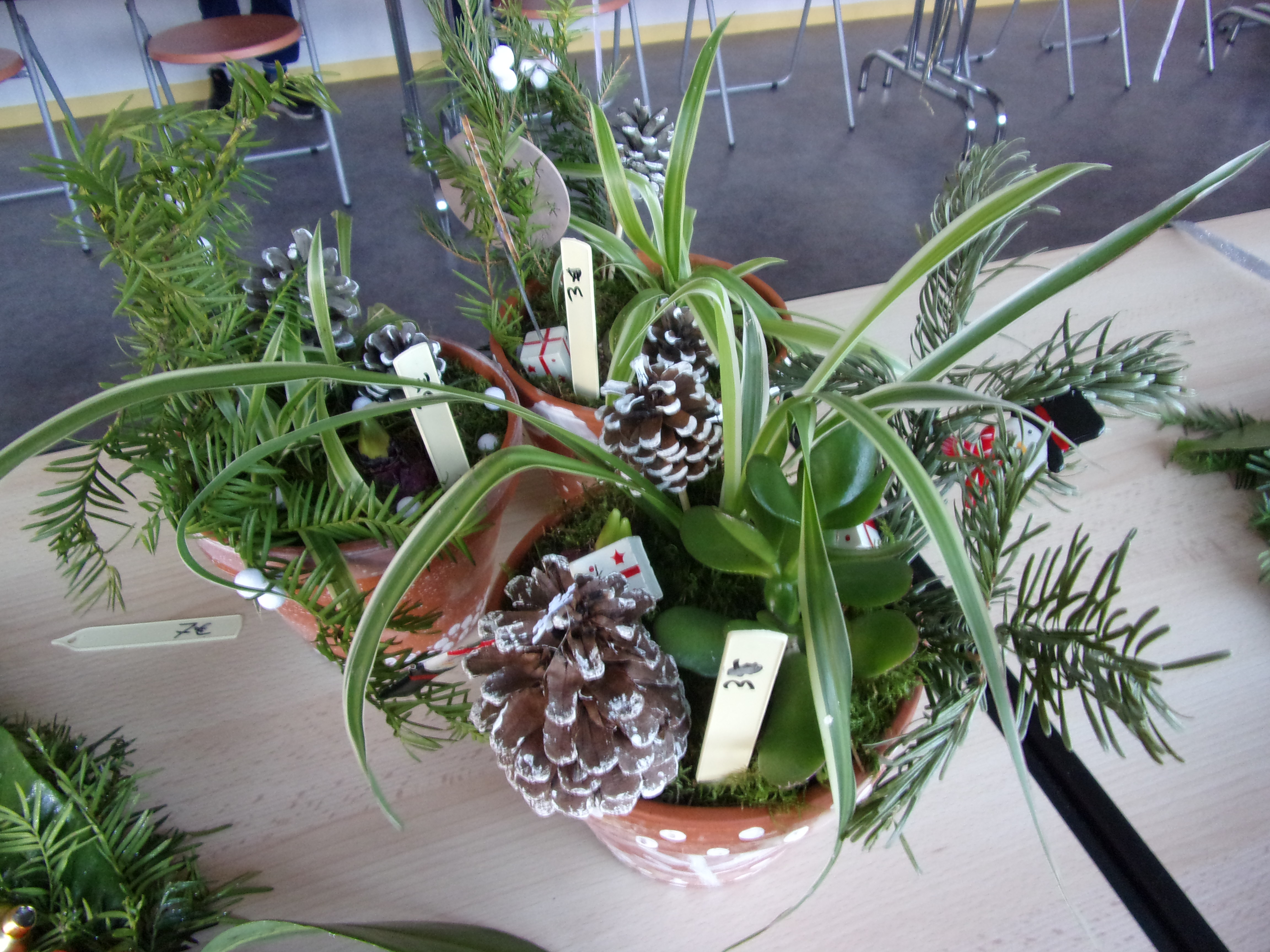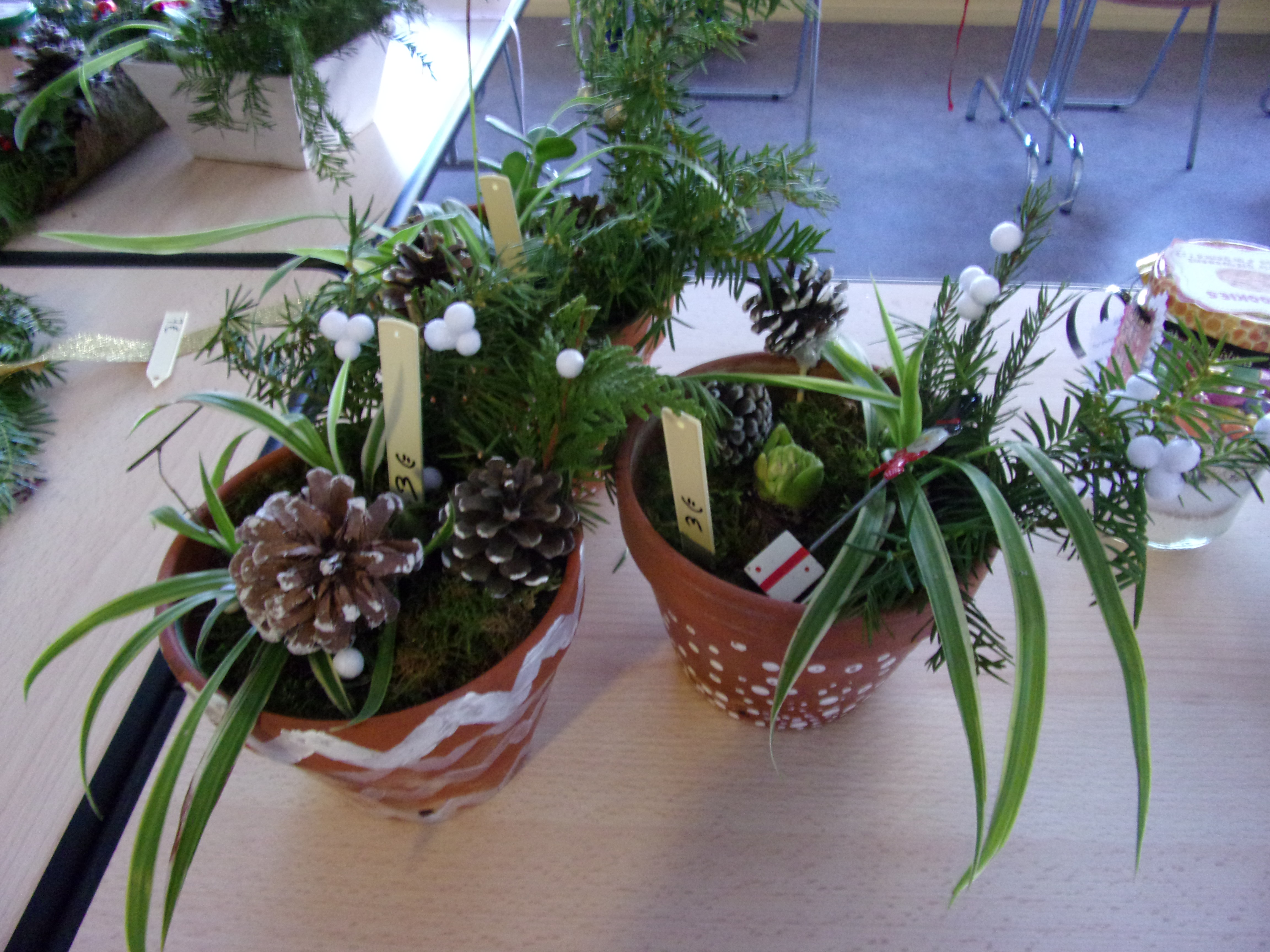 Pendant ce temps, les élèves de l'atelier ERE et madame Poullard proposaient à l'équipe pédagogique des couronnes de Noël et des compositions.Distribution de chocolat chaud aux eleves
