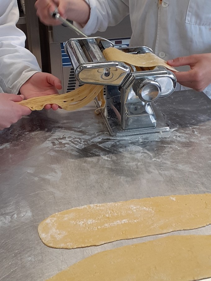 Avec l’arrivée des lycéens italiens, nous avons décidé de faire un plat typique de chez eux. Après avoir découvert et cuisiné différents desserts d’Italie, ainsi que des pizzas, nous nous sommes mis en route pour réaliser des pâtes fraiches, plus précisément, des tagliatelles !!