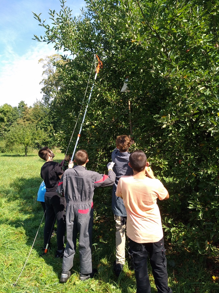 Les élèves de 3ème ERE ont ramassé des pommes dans le verger de la résidence Les Temps Bleus. Ils ont rencontrés les résidents pour un moment de partage. Madame Parant utilisera les pommes pour son atelier de cuisine afin de réaliser des compotes et de délicieuse tarte...
