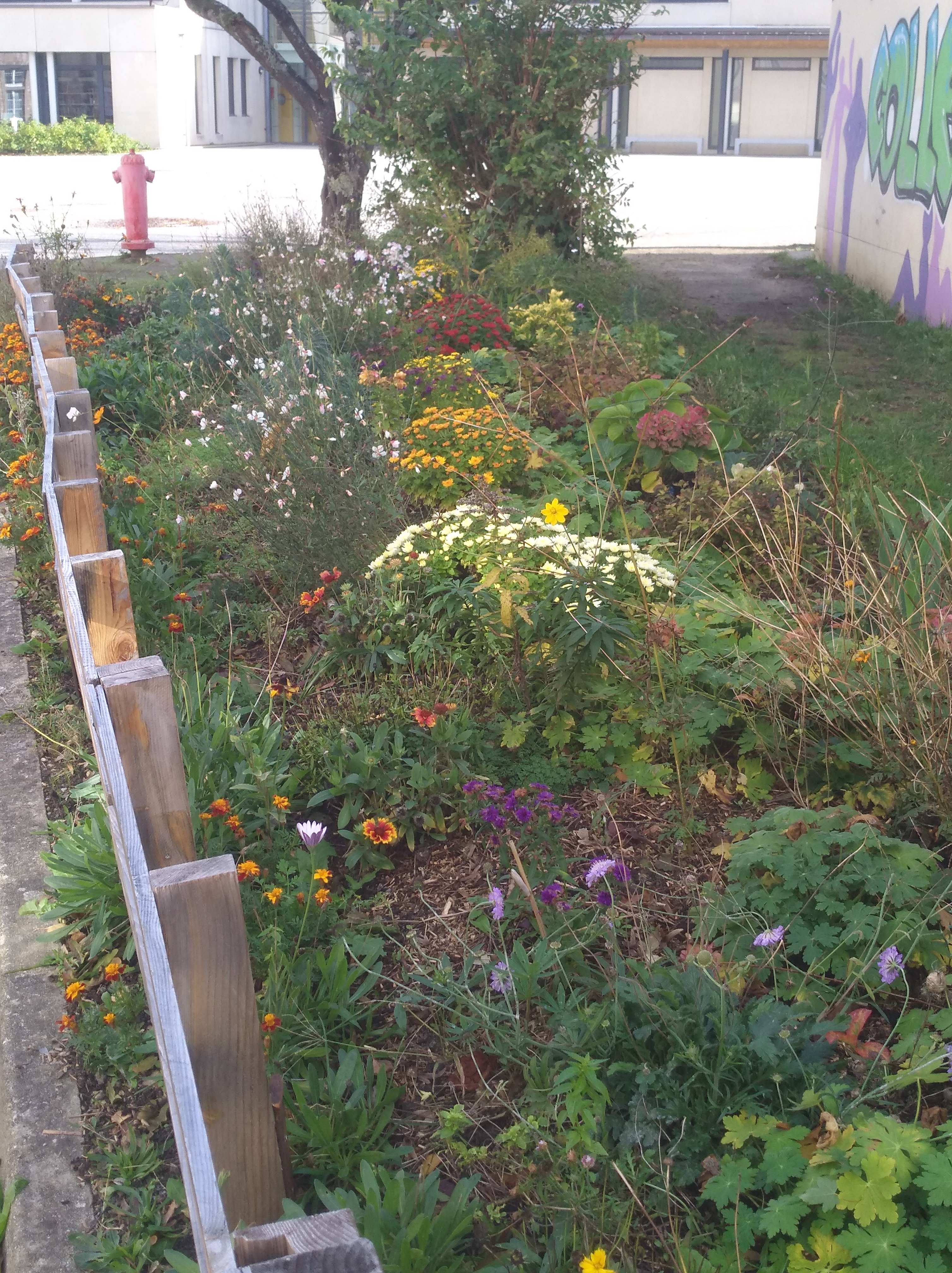 Les élèves ERE ont préparés le terrain et réalisé l'engazonnement. En parallèle, ils ont confectionnés des installations florales pour les cafés gourmands de la classe de HAS. Le potager n'est pas en reste, ils ont désherbés, semés les légumes d'hivers et disposés un paillis de feuilles préalablement ratissées dans l'enceinte du collège. Un nouveau bac de compostage est en cours de réalisation pour couvrir les besoins liés aux travaux de jardinage, il viendra renforcer les 3 bacs existants.