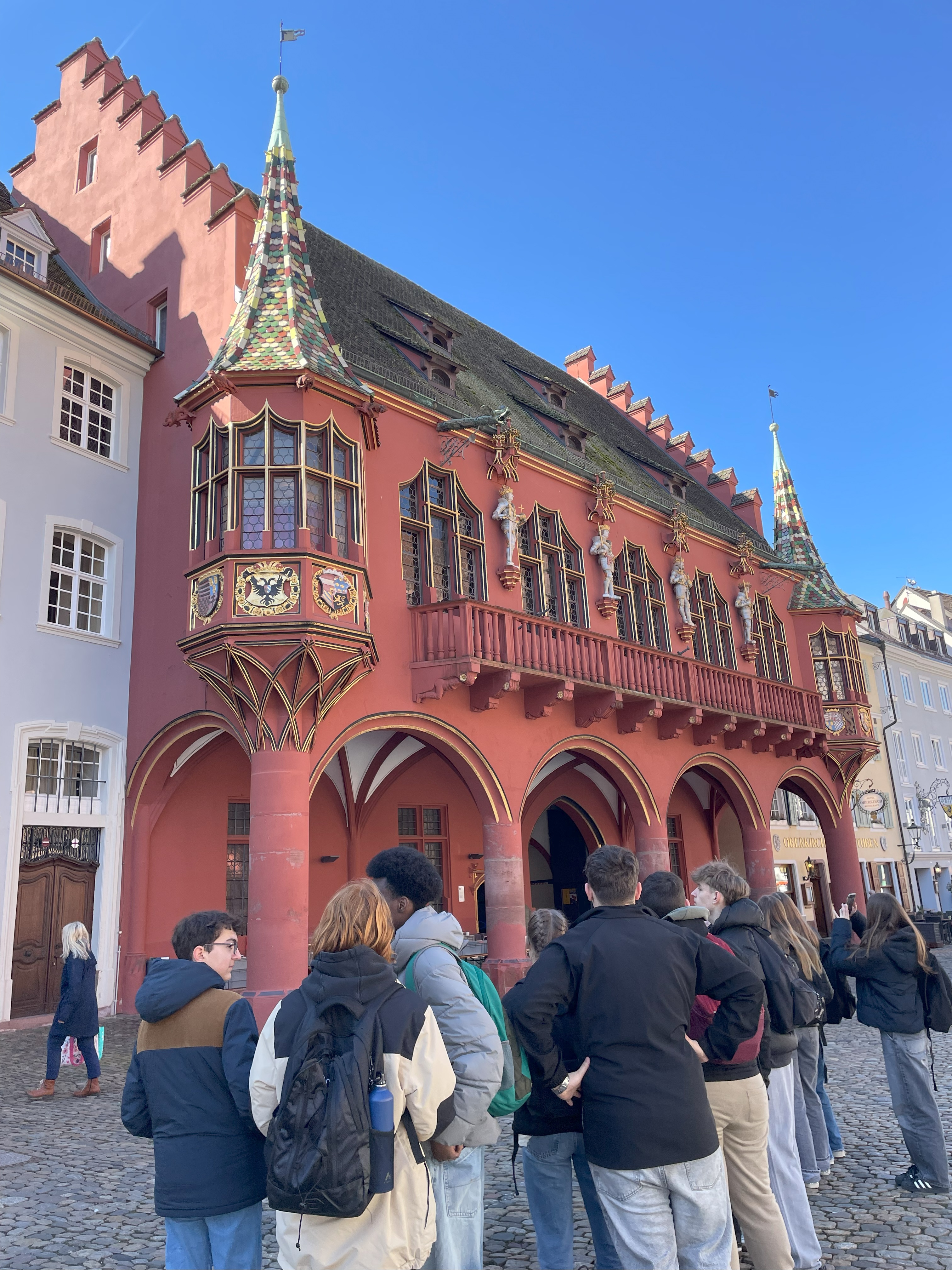 Aujourd’hui pour le 2eme jour, nous avons d’abord pris le bus pour aller en direction de Freiburg. Une fois arrivés sur place, nous avons rencontré une guide qui nous a guidé dans le centre ville. Elle nous a montré des monuments puis elle a nous a expliqué l’histoire de la ville: quand elle a été fondée et aussi comment.
