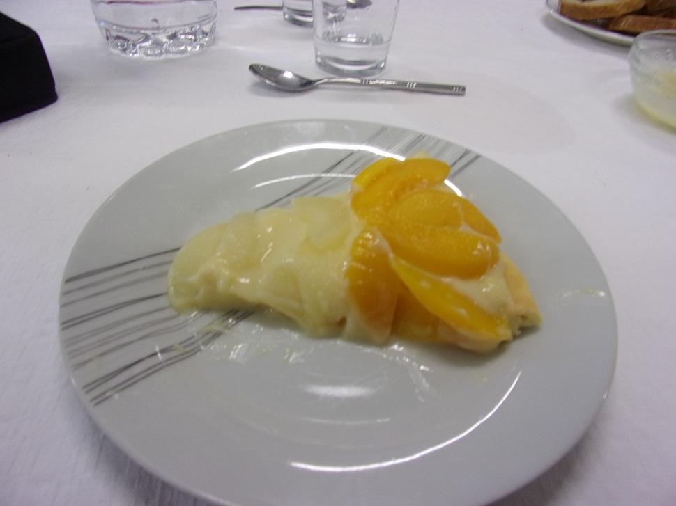 Au menu : Croque-Monsieur et sa salade, tarte aux abricots et aux poires et café.Tables dressees